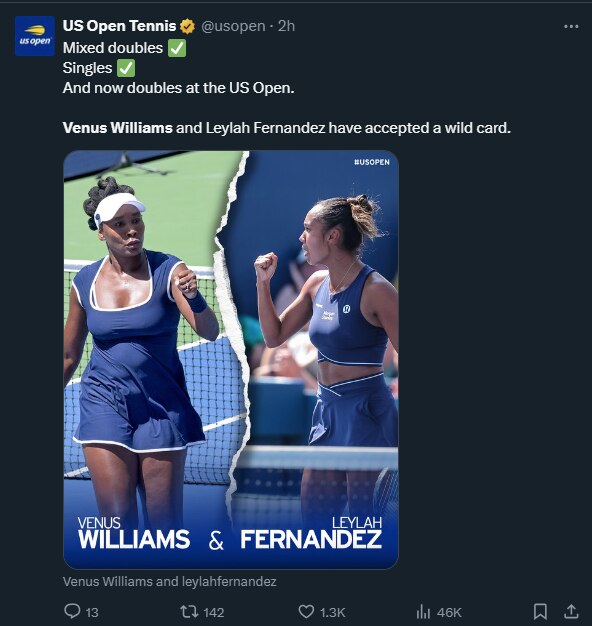 Venus Williams is far from being done in the ongoing US Open 2025. She will be playing the women’s doubles competition after receiving a wildcard entry from the tournament. Venus will be competing with 2021 finalist Leylah Fernandez.